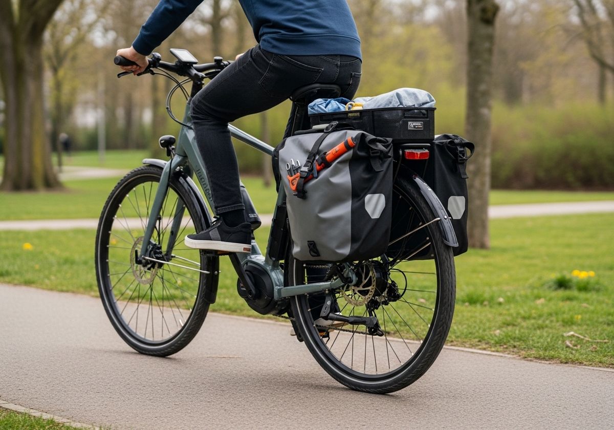 Rear Rack and Panniers: Increase your e-bike's cargo capacity with a rear rack and panniers. These are perfect for carrying groceries, work essentials, or picnic supplies.